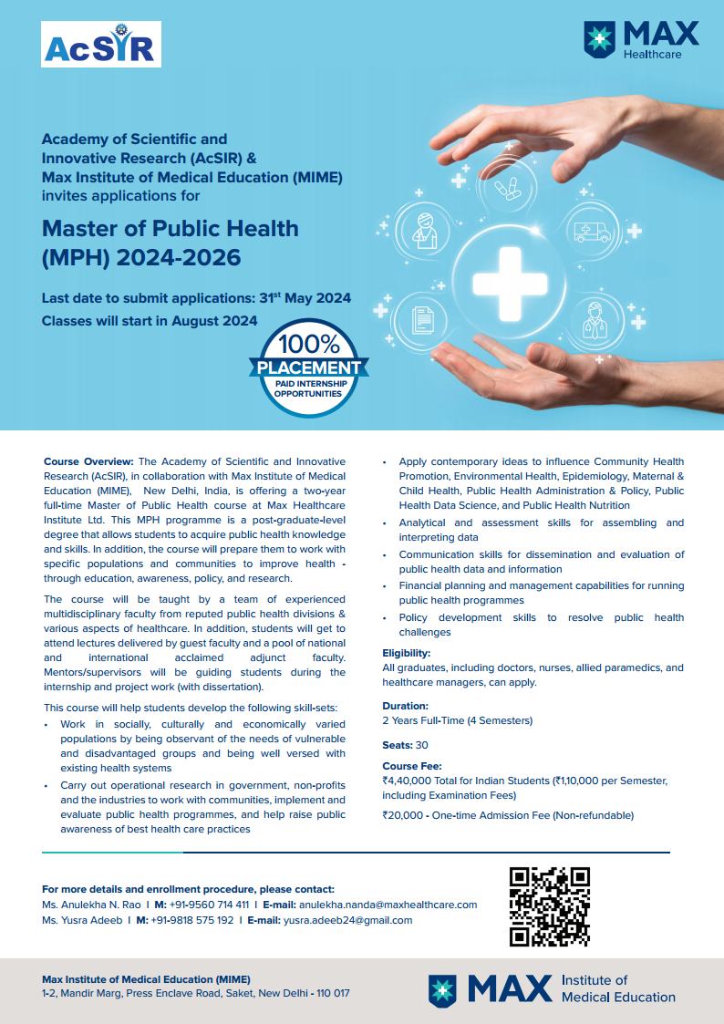 • 5 Private Institutes 2 institutes of the Public Health Foundation of India (PHFI), TIGS, MAX, TCG-CREST